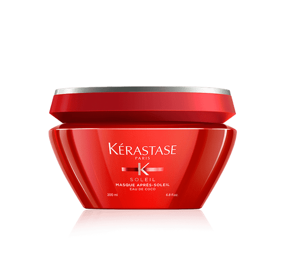 Kerastase Masque Après Soleil er en hårmaske der er beriget med kokosvand og genopfylder håret med fugt, efter det har været udsat for sol, sand og salt. Når hårmasken påføres renset hår, udglatter den hårfiberen og får håret til at føles ensartet fra rod til spids. Den unikke, glitrende gelkonsistens er øjeblikkeligt kølende og så let, at selv det fineste hår ikke tynges ned. Den efterlader en let, sommerlig blomsterduft med jasminnoter og sensuel tuberose, så håret bliver strålende og velduftende fra morgen til aften.